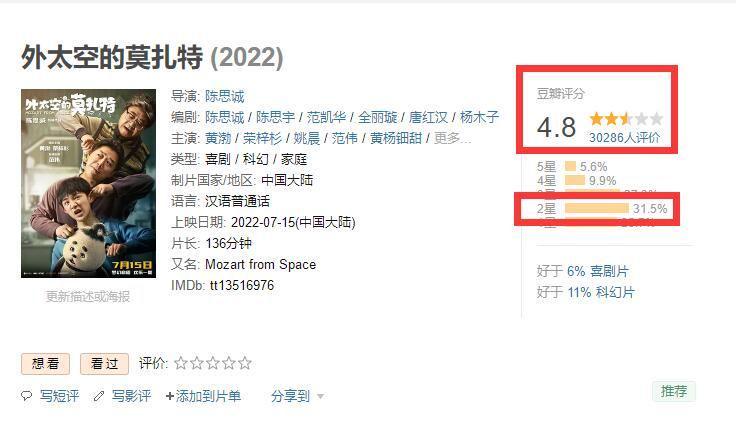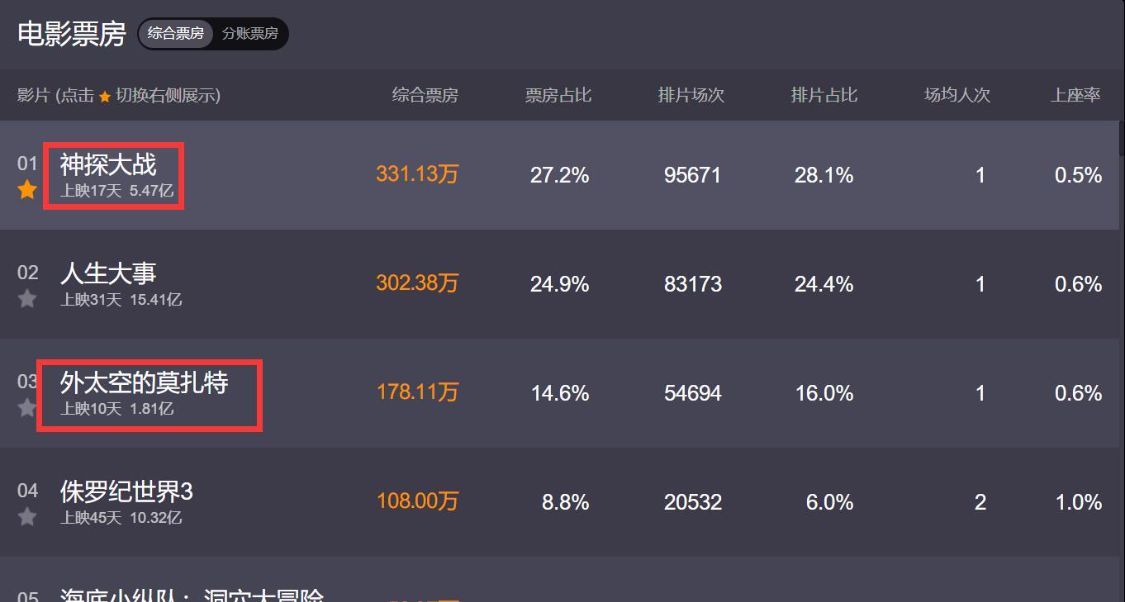 当然,这还不是最惨的,最惨的,还是这部电影的票房,截止到目前,《外太空的莫扎特》上映10天的时间里面,累计票房仅仅只有1.81亿,按照这个票房分账来计算的话,也就意味着这部电影,片方撑死了只能拿到几千万的收益,最关键的是比它上映早7天的《神探大战》都有5.47亿的票房。