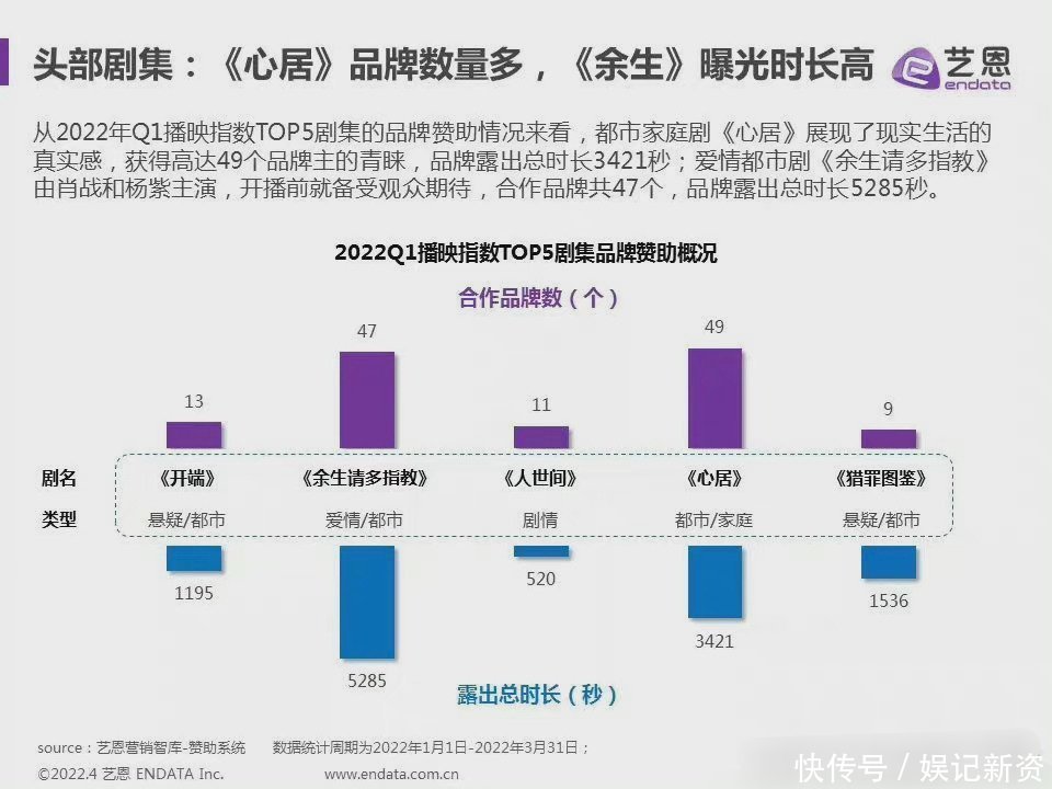 余生以47个合作品牌数的成绩仅次于49个合作品牌数的电视剧《心剧》,但是广告的露出总时长以5285秒的成绩远高于《心剧》的3421秒。这商业能力也是杠杠的!粉丝们也是表示各种榜单,都有余生!自己作为粉丝都觉得很骄傲。