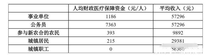 而不同群体在医疗费用上得到财政补贴也有所不同,公务员最多、事业单位其次,之后是新农合农民和城镇居民,城镇职工为零。