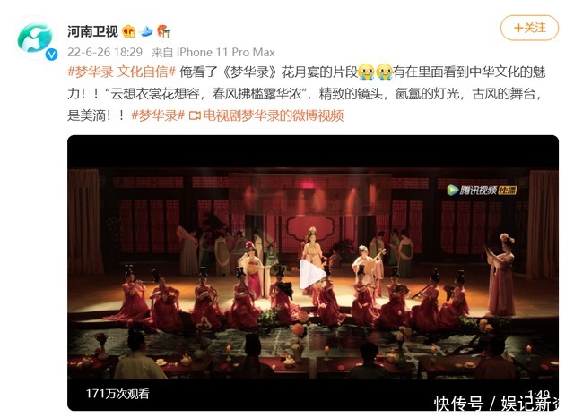 连河南卫视官方微博都发文称俺看了《梦华录》花月宴的片段有在里面看到中华文化的魅力“云想衣裳花想容春风拂槛露华浓”精致的镜头氤氲的灯光古风的舞台是美的