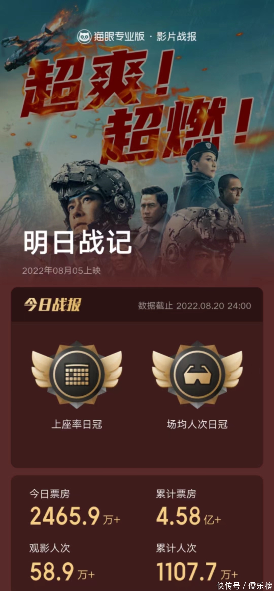 不过,近日因为口碑的回暖以及各位网友的力挺,《明日战记》出现了逆袭,票房较之前有所提升。并且,据资料显示,该片从8月14日开始,至今已经连续一周拿下了上座率冠军。