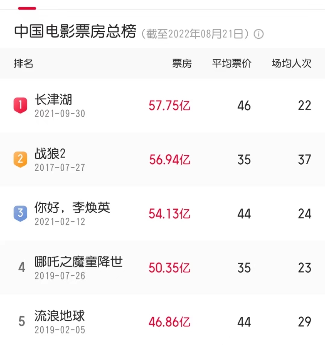 而除了剧情之外,古天乐可以找自己的好友吴京帮忙。众所周知,现在吴京的票房号召力那是杠杠的,华语票房榜前三,冠军《长津湖》和亚军《战狼2》全是他主演的,而前五他也占了三个位置。因此,如果《明日战记2》能够拉上吴京,相信局面会完全不同。