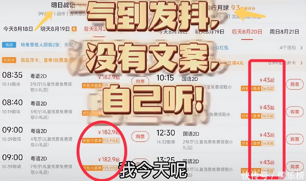 那么为什么明明上座率这么高,但票房却增长不明显呢?有网友在网上爆出了真相。该网友爆料:《明日战记》上个周末十点之前的电影票价卖182.9元/张,六场安排皆是如此。而同期《独行月球》的票价却才43元!要知道,虽然《明日战记》的特效做得要比《独行月球》上心,但都是2D电影,凭什么《明日战记》要卖这么贵呢?难道是为了回本,就开始什么脸面都不要了吗?
