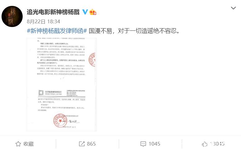 不得不说观点很离谱,如果是不关注国漫作品又或者是电影本身,在有心人的广泛传播下被误导也不是没可能,庆幸《杨戬》官方够硬气,在听到相关消息和污蔑时,很快就做出了硬气的反应,官方发表了一张律师信霸气维权,向造谣者发起了维权的斗争,让多少国漫粉丝拍手称快?造谣成本太低原创者维权不能怂!