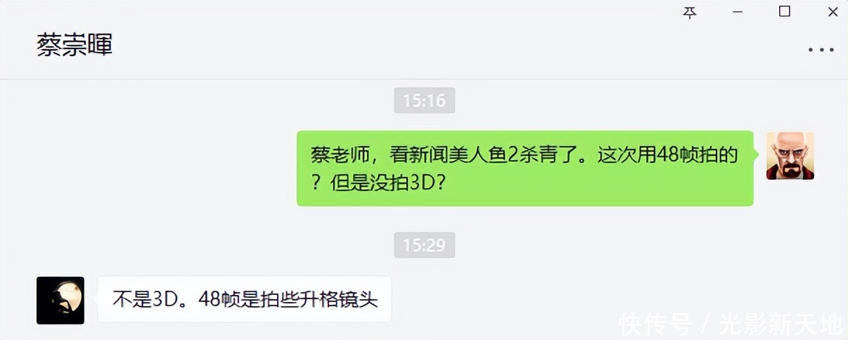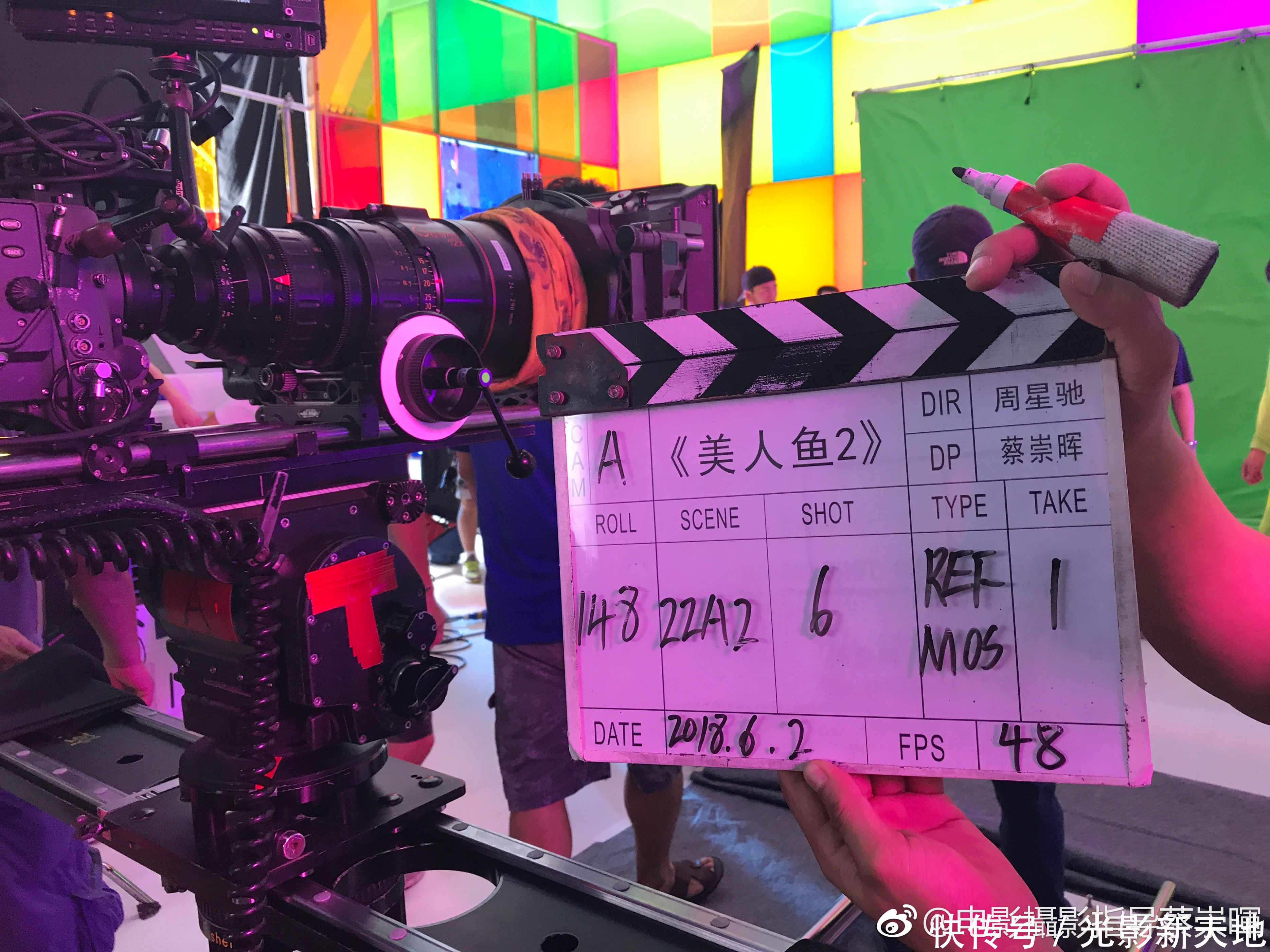 此外,之前电影摄影师蔡崇辉发了几张片场照片,通过场记板能够看出,用了48帧的高帧率拍摄,我们当时也求证了摄影师蔡崇辉,他回复《美人鱼2》将不会制作3D,用48帧拍了一部分升格镜头。