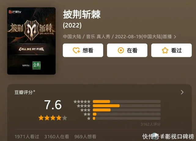 在芒果TV播出的《披荆斩棘》,已经正式在豆瓣开评分了。一开分,就获得了7.6的好成绩,算是中等偏上的水准。这样一比,前脚刚结束不久的《乘风破浪》,却只得到了5.8分