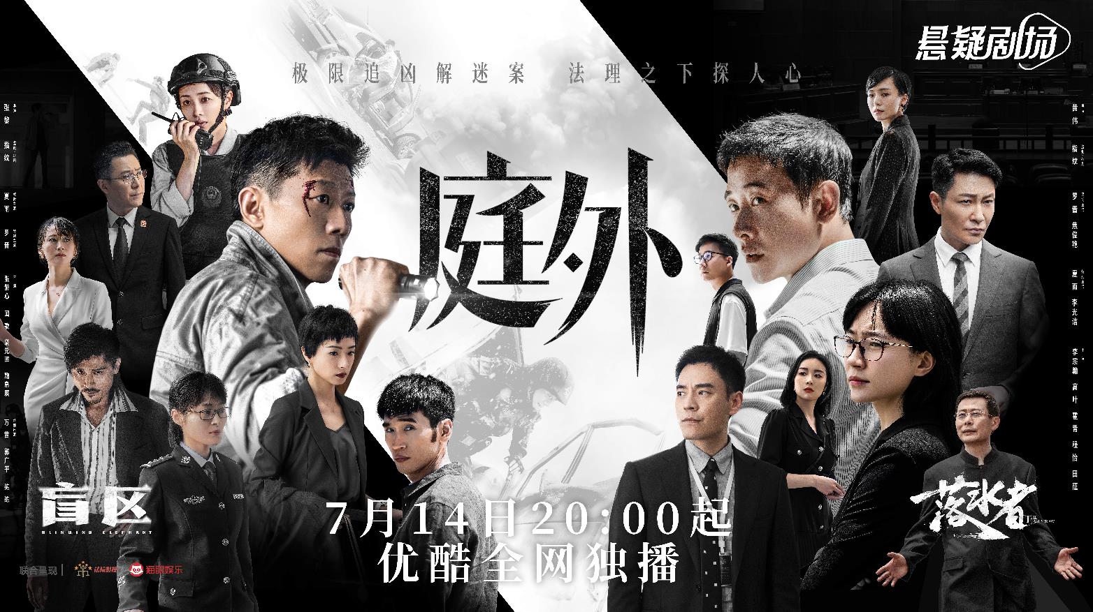 系列剧《庭外》由张黎、黄伟执导,指纹编剧并担任监制,优酷信息技术(北京)有限公司、最高人民法院影视中心,江苏猫眼文化传媒有限公司出品,阿里巴巴(北京)软件服务有限公司联合出品,江苏猫眼文化传媒有限公司、人民法院新闻传媒总社联合摄制,将于7月14日登陆优酷独家播出。