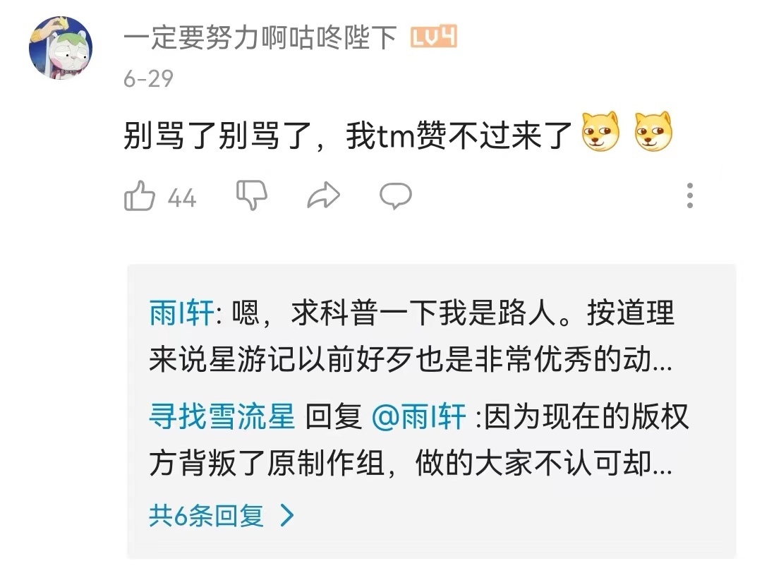 不会做,那官方可以不做,很多观众只认可刘北老师的星游记,也希望官方把版权能还给刘北。